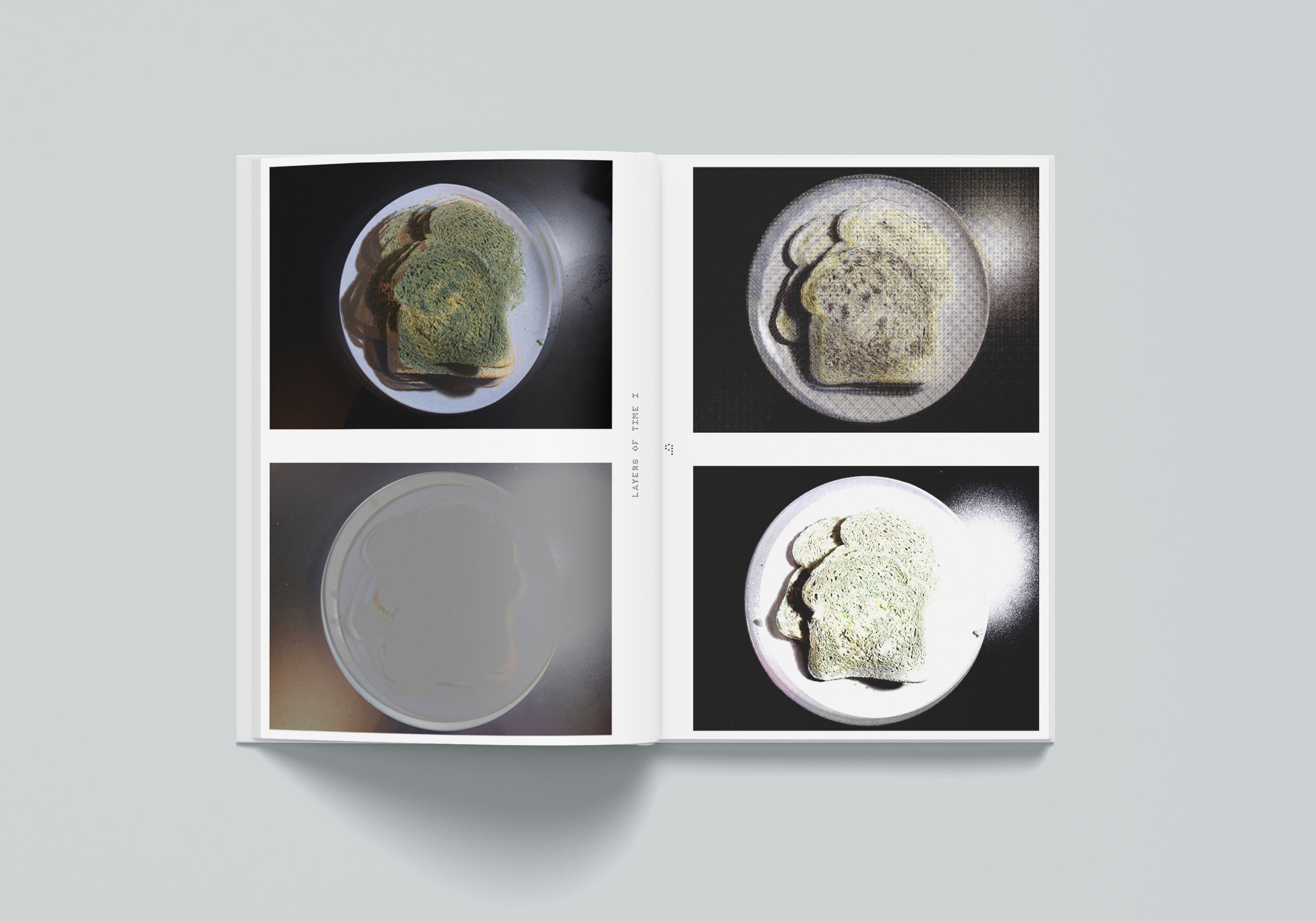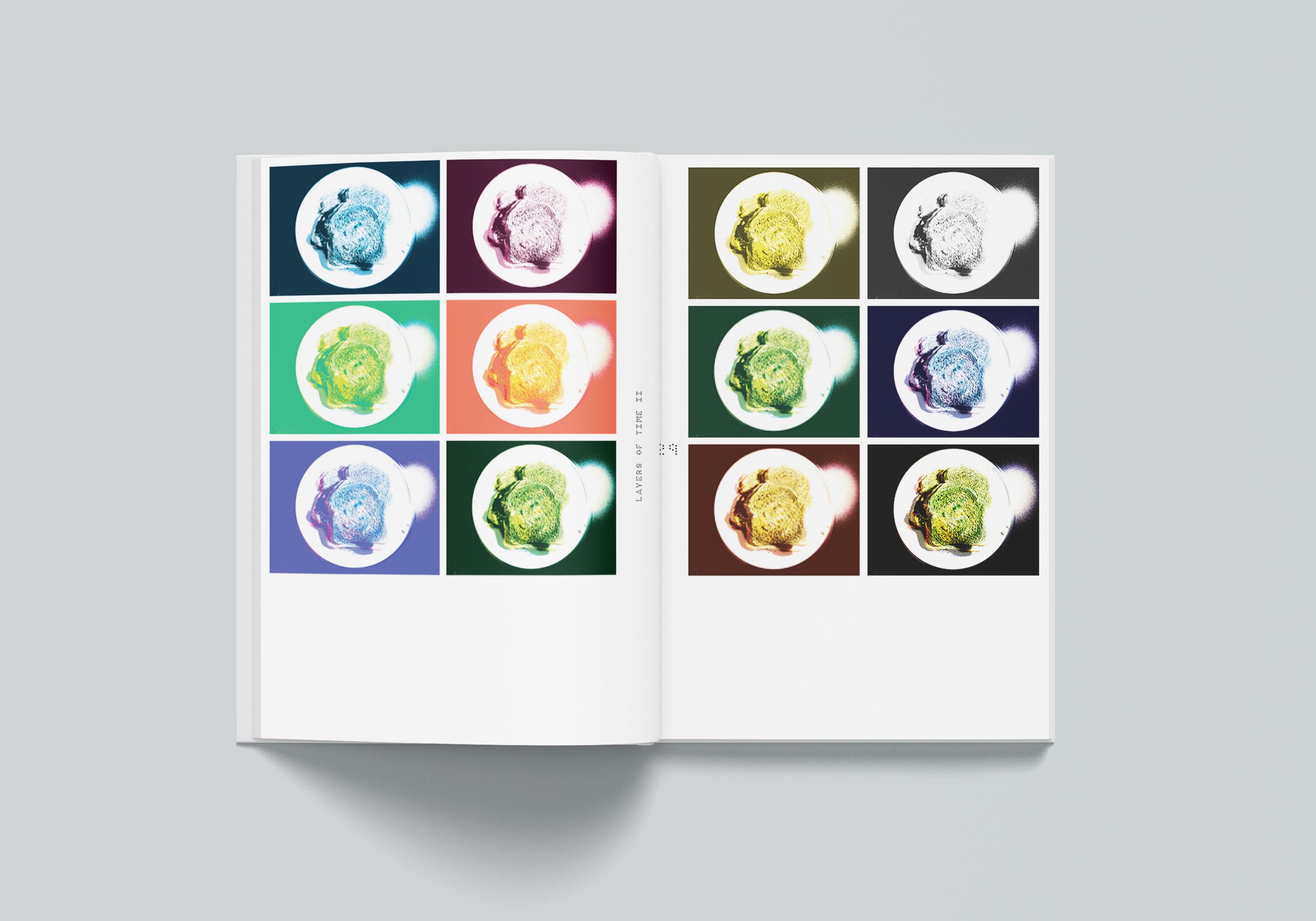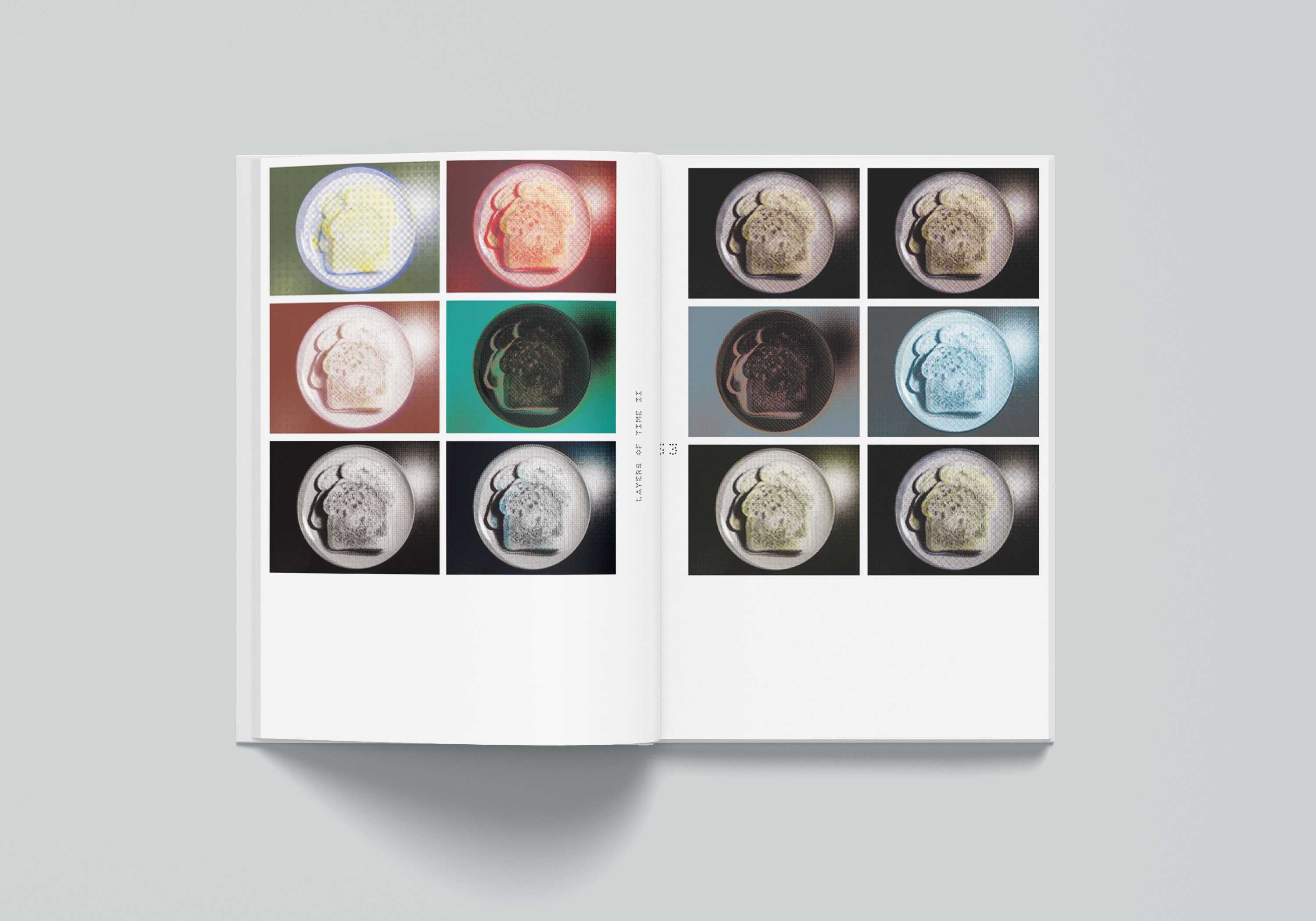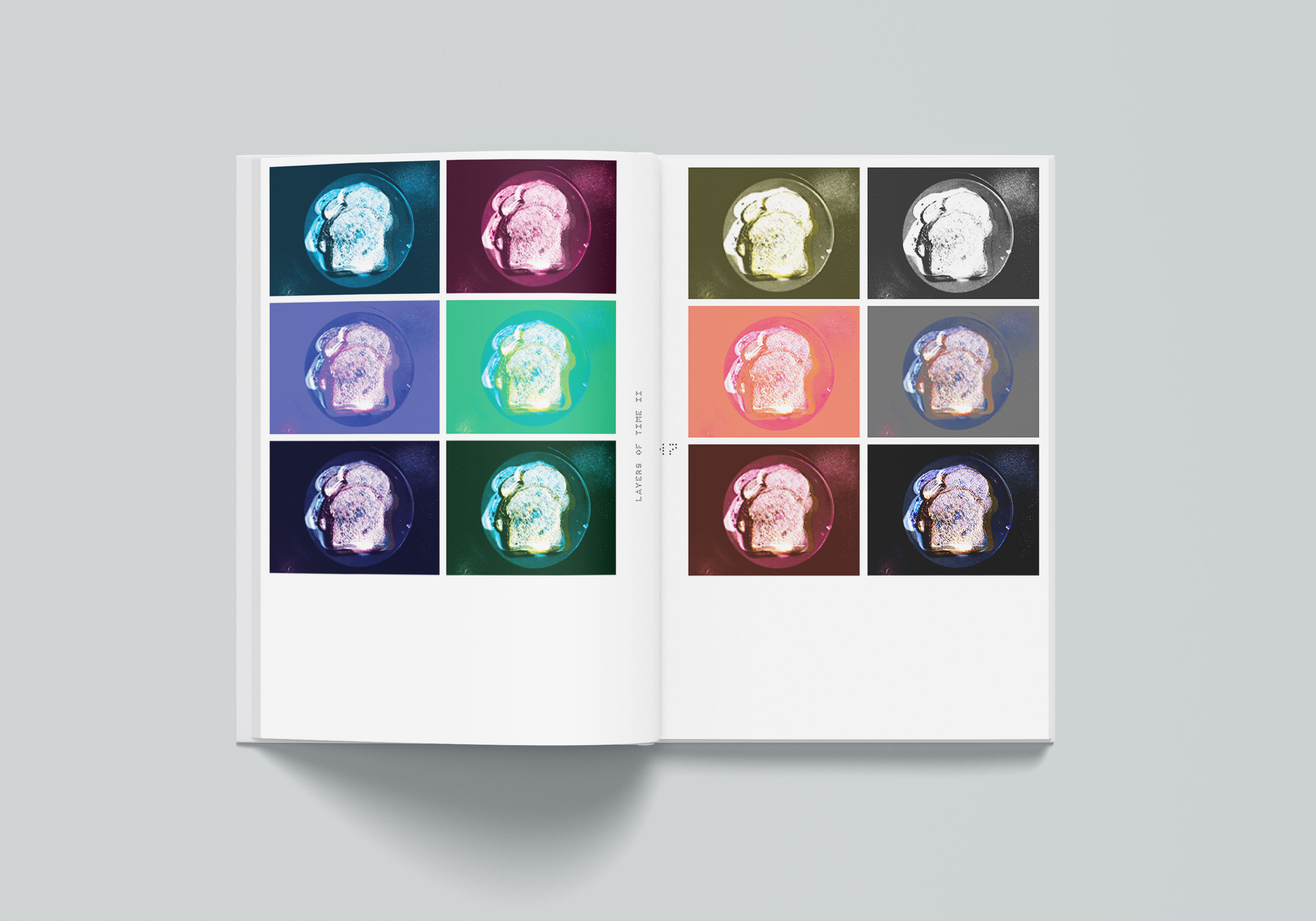 I observed the process of fungus being generated on the bread for 8 days and they are layered in one image afterward, which were disassembled into 12 CMYK-layered colours again. With CMYK characteristics, they became the elements of printing test sheets to expand the ‘Tesseract’. Time can be ‘imagined’ in 4D structure, Tesseract where ‘All This Can Happen!’