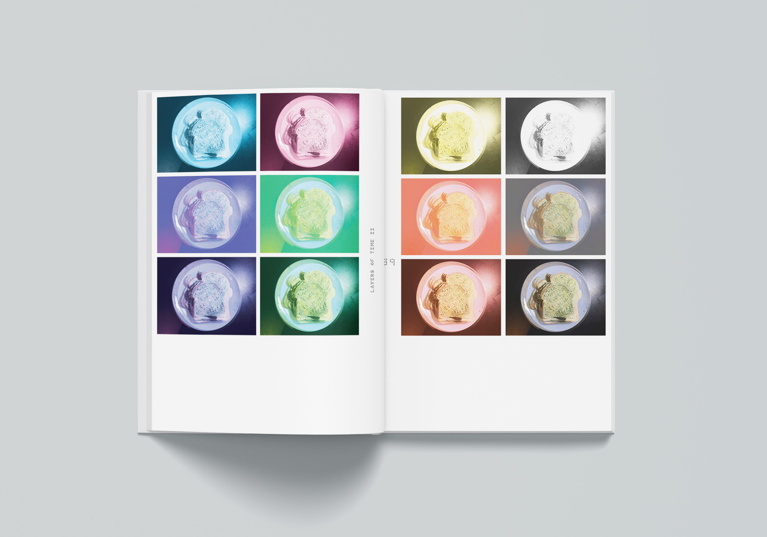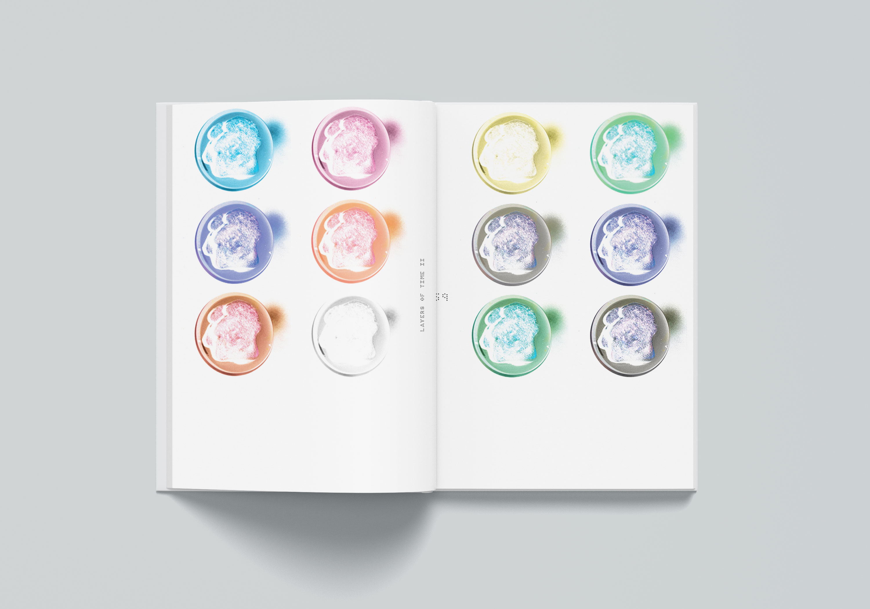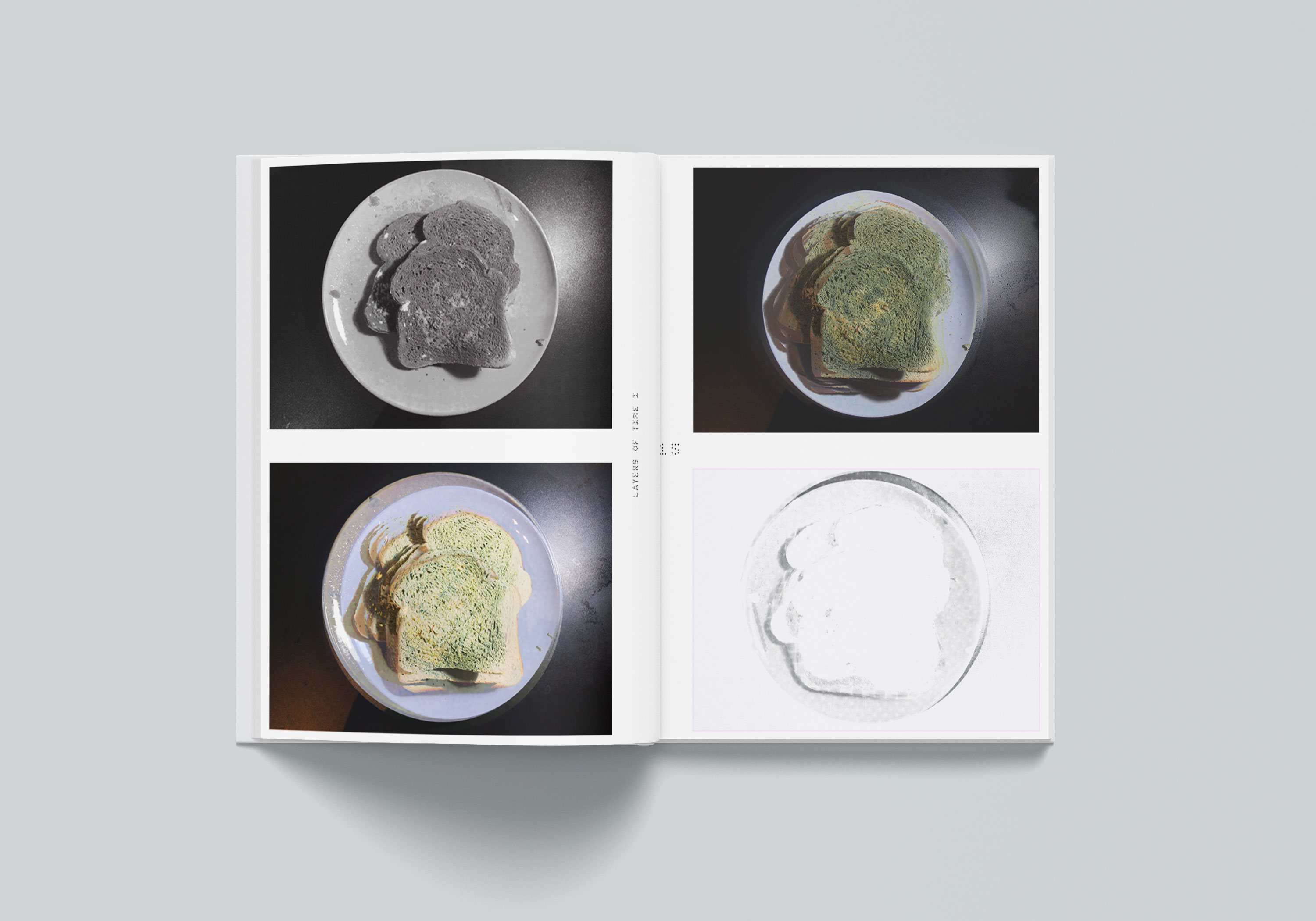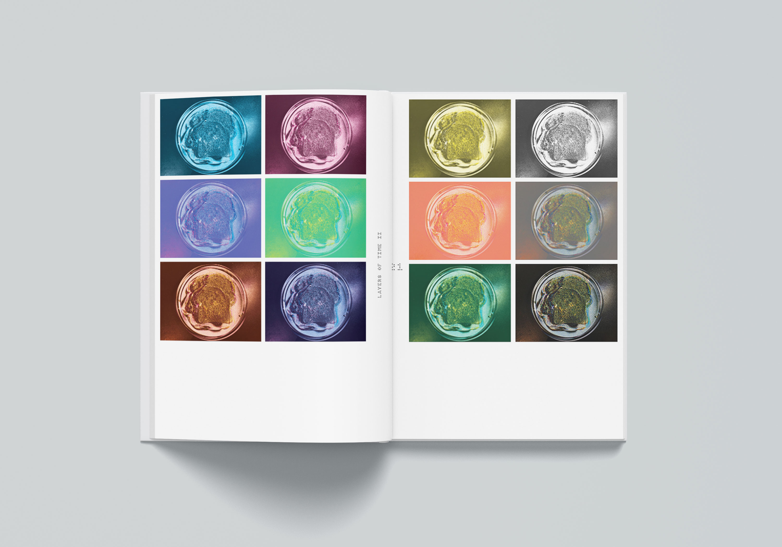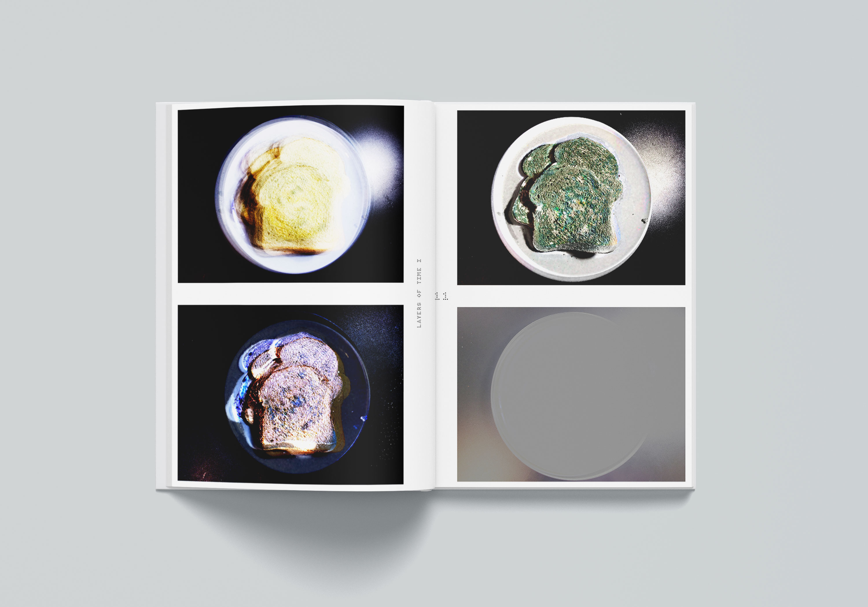 I observed the process of fungus being generated on the bread for 8 days and they are layered in one image afterward, which were disassembled into 12 CMYK-layered colours again. With CMYK characteristics, they became the elements of printing test sheets to expand the ‘Tesseract’. Time can be ‘imagined’ in 4D structure, Tesseract where ‘All This Can Happen!’